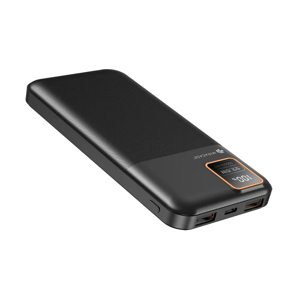 סוללת טעינה אלחוטית מהירה MIRACASE MPB10LCD בצבע שחור משלבת עיצוב אלגנטי וביצועים מתקדמים, עם קיבולת של 10,000mAh המספקת טעינה מלאה למספר מחזורים. הסוללה תומכת בטעינה אלחוטית מהירה בעוצמה של עד 15W, לצד אפשרות לטעינה קווית באמצעות יציאת USB-C דו-כיוונית ו-יציאת USB-A.